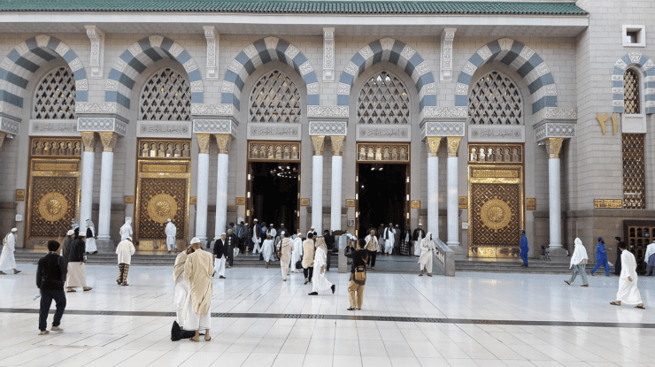 Bab Malik al-Fahad, or the Gate of King Fahad, is the main northern entrance to the Prophet’s Mosque, named after King Fahd bin Abdulaziz al-Saud, who ruled Saudi Arabia from 1982 to 2005. It is the largest gate of Masjid an-Nabawi, featuring two minarets, seven doors, and five domes. The minarets flanking the gate are among the six tallest added during the mosque’s second expansion.